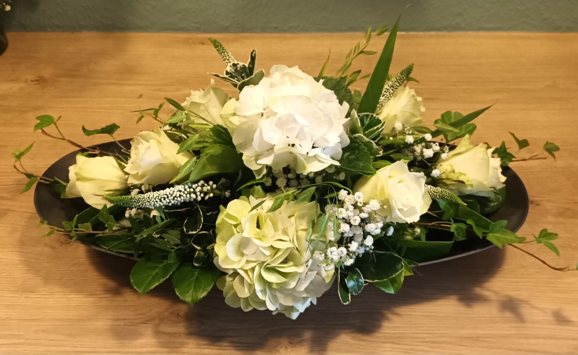 In dieser Galerie zeigen wir Beispiele unserer Arbeiten in der Trauerfloristik – vom klassischen Kranz über Sarg- und Urnenschmuck bis hin zu Herzen, Gestecken und Wurfsträußen. Jedes Arrangement wird individuell gestaltet – in enger Abstimmung mit Ihnen und mit viel Feingefühl.